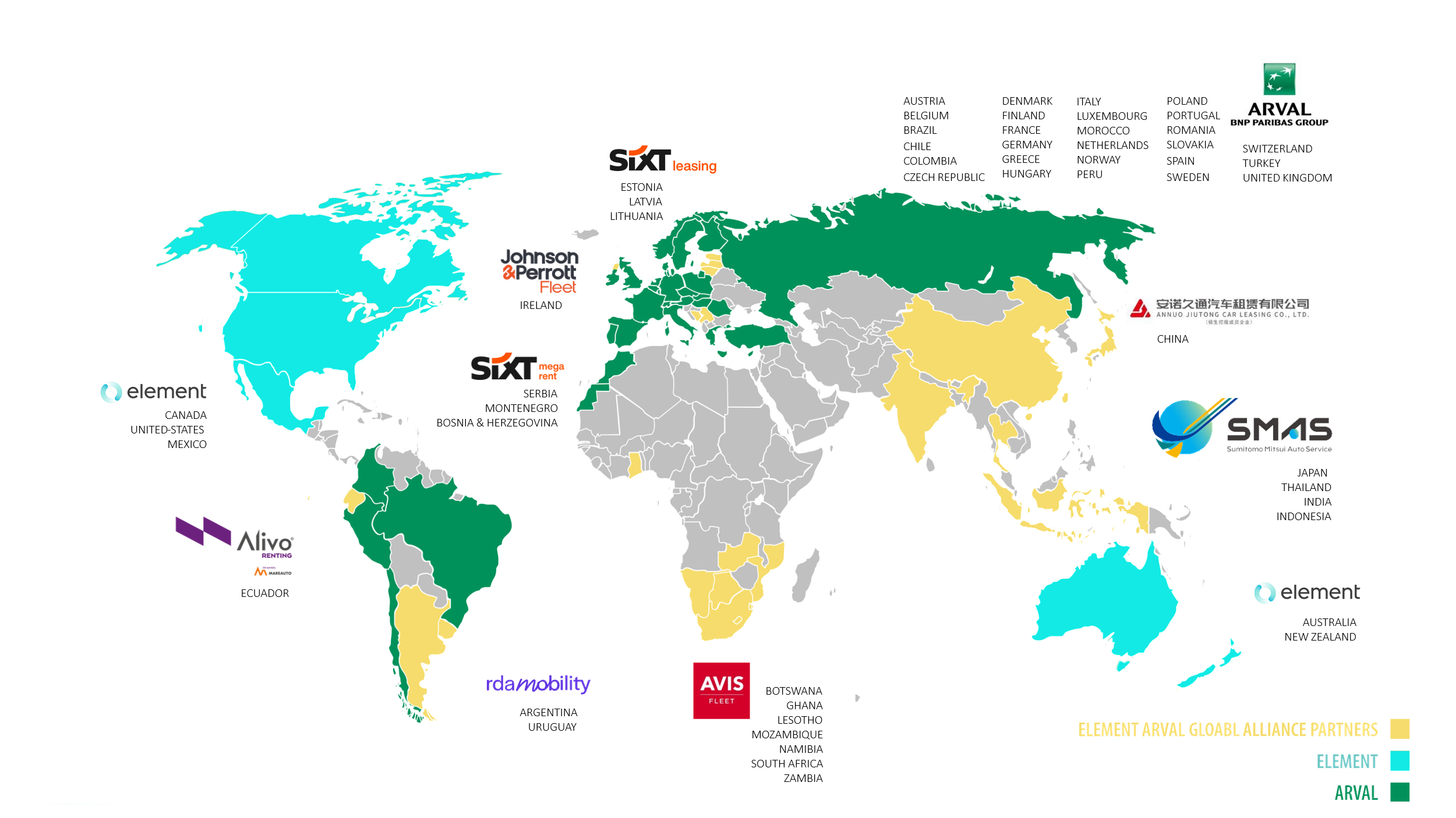 The Element-Arval Global Alliance currently manages more than 4.5 million vehicles in over 50 countries across North America, Latin America, EMEA and Asia-Pacific. We are actively engaged in identifying countries with high customer demand, which provide the highest Total Cost of Ownership benefit for customers. Our global footprint expands each year.